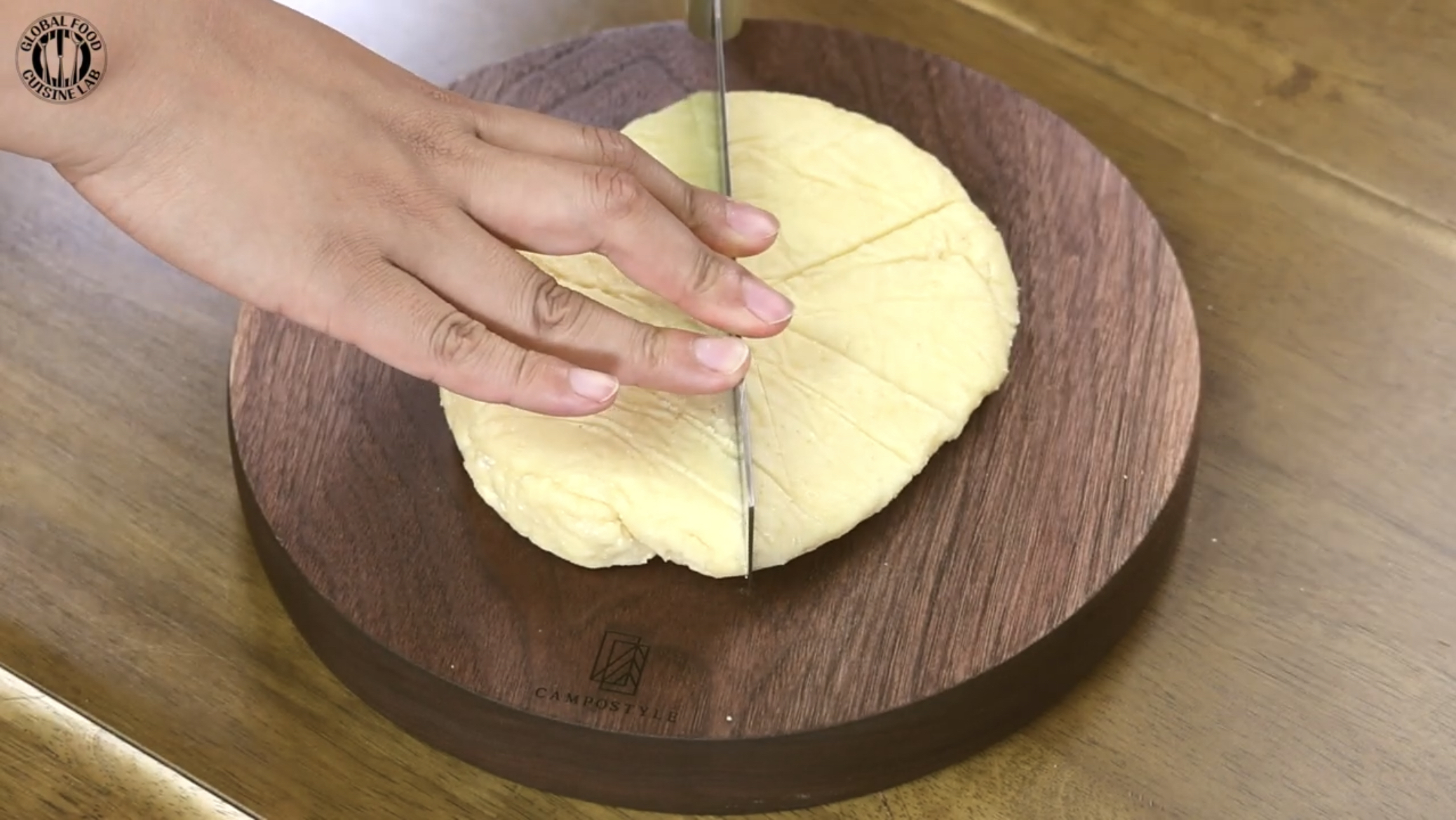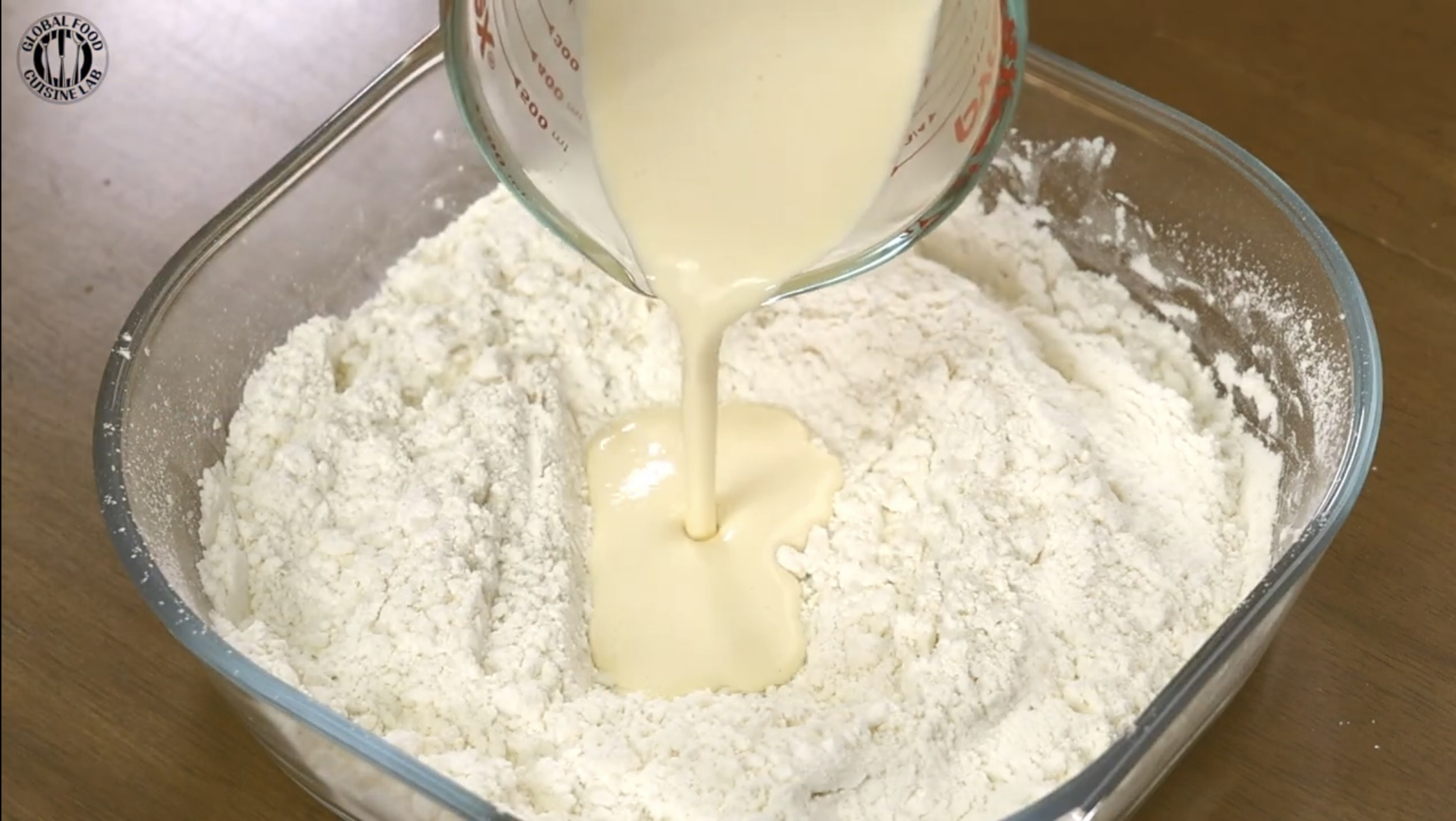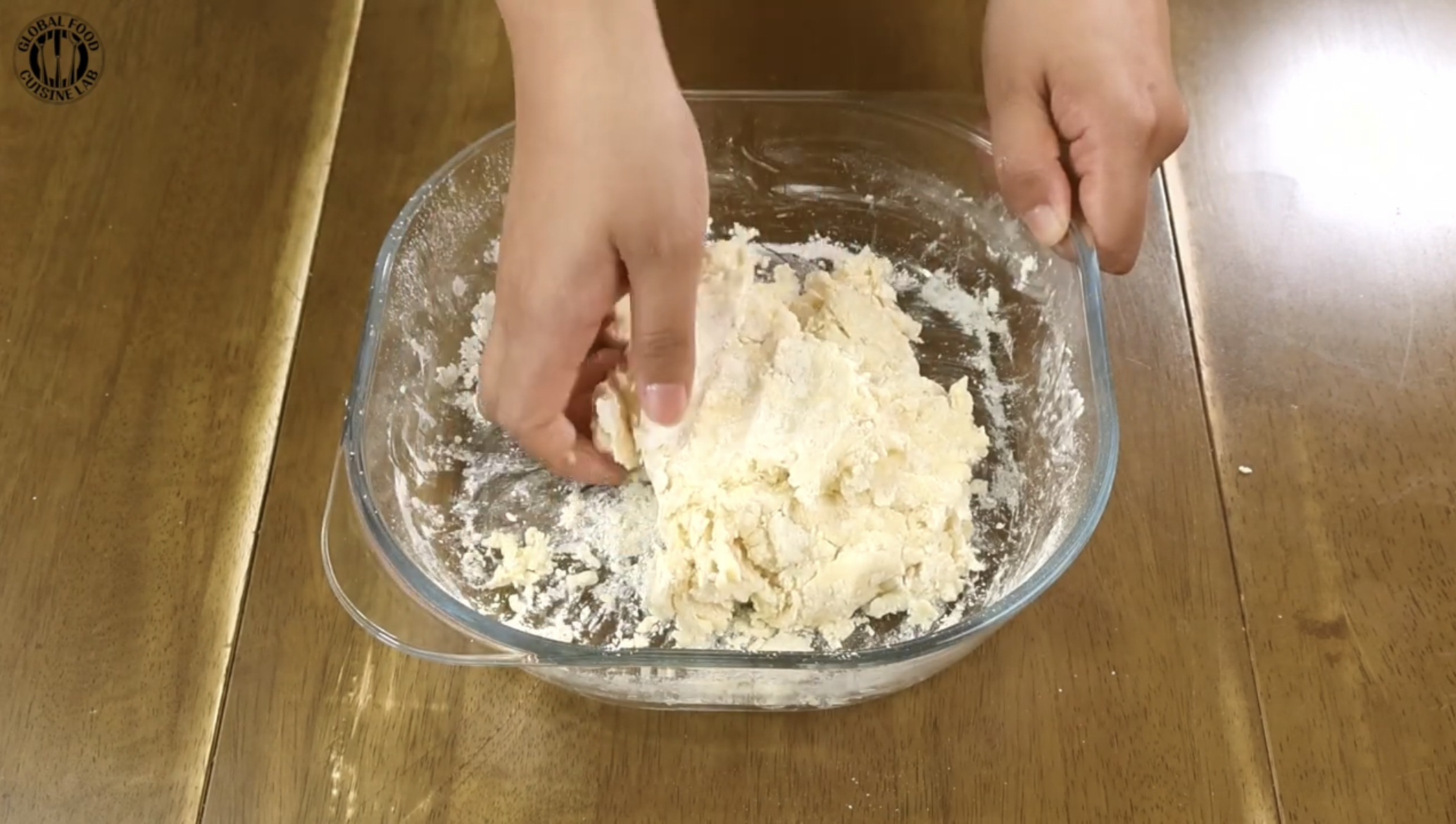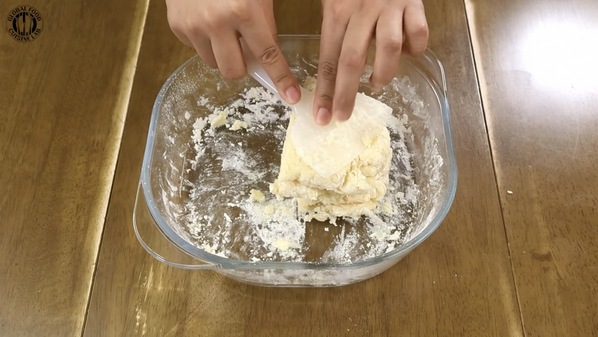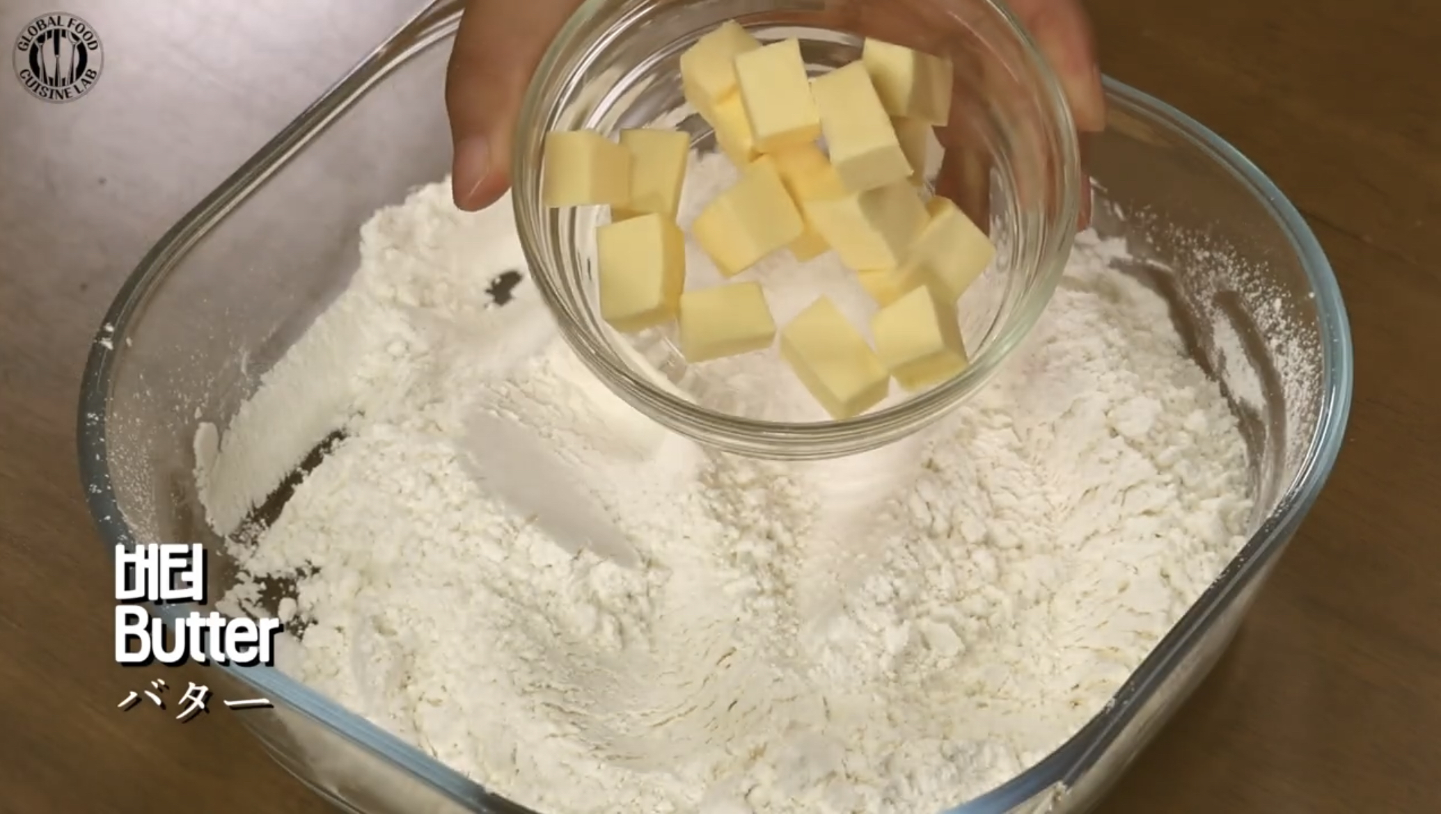 6. 그리고 버터를 으깨 주세요. 여기서 버터가 완전히 녹아버리면 안되요! 적당히 실온의 버터가 천천히 눌러앉으면서 으깨져야 합니다.