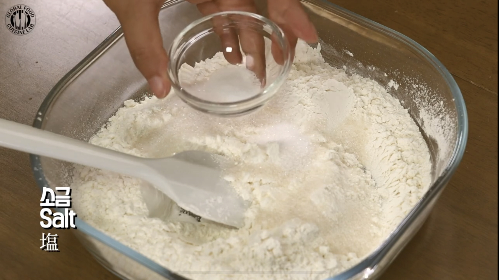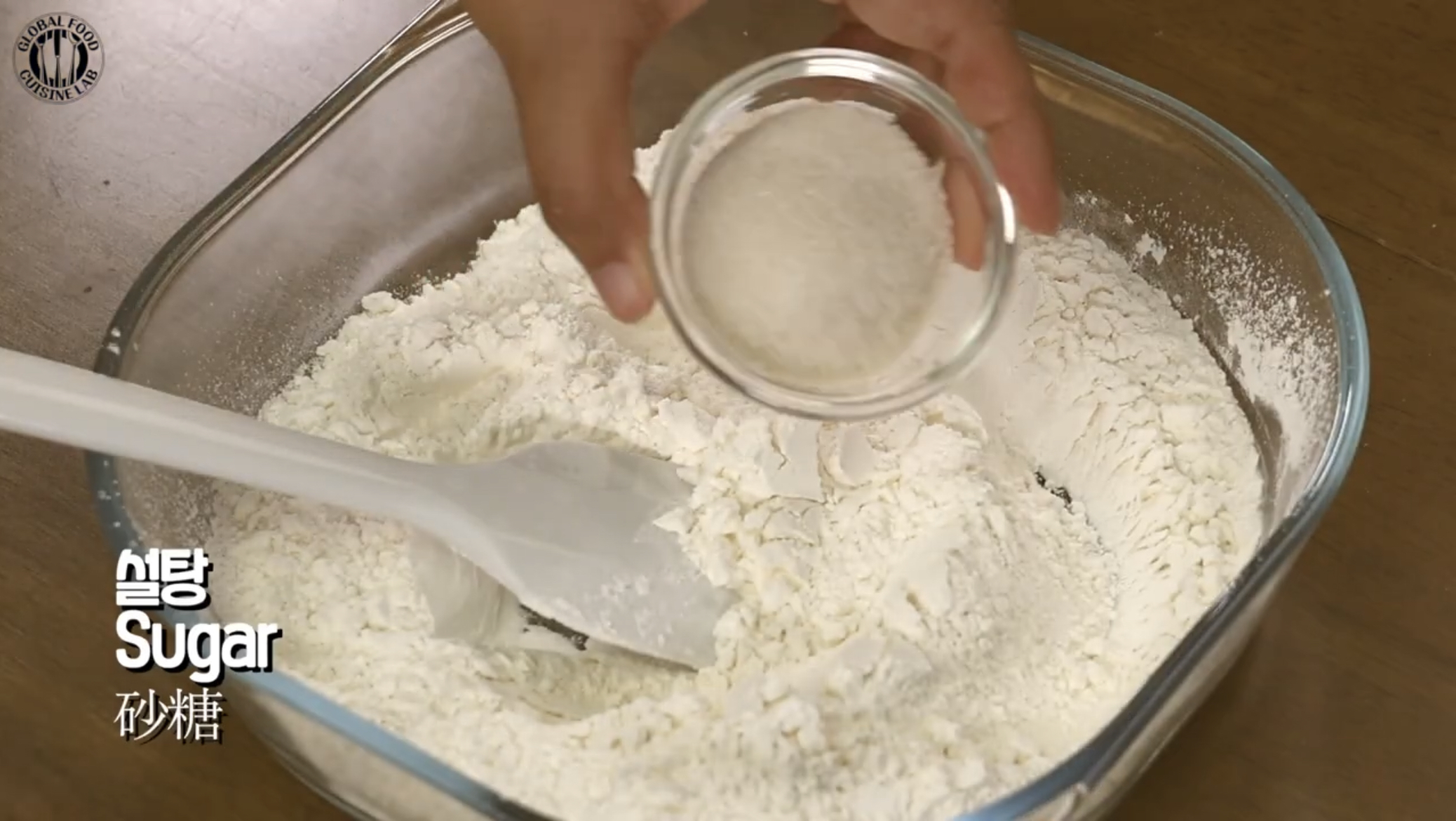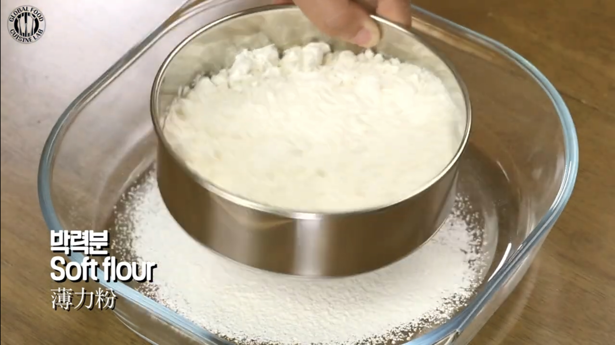 1. 박력분을 채반에 걸러서 고운입자를 내려줍니다.