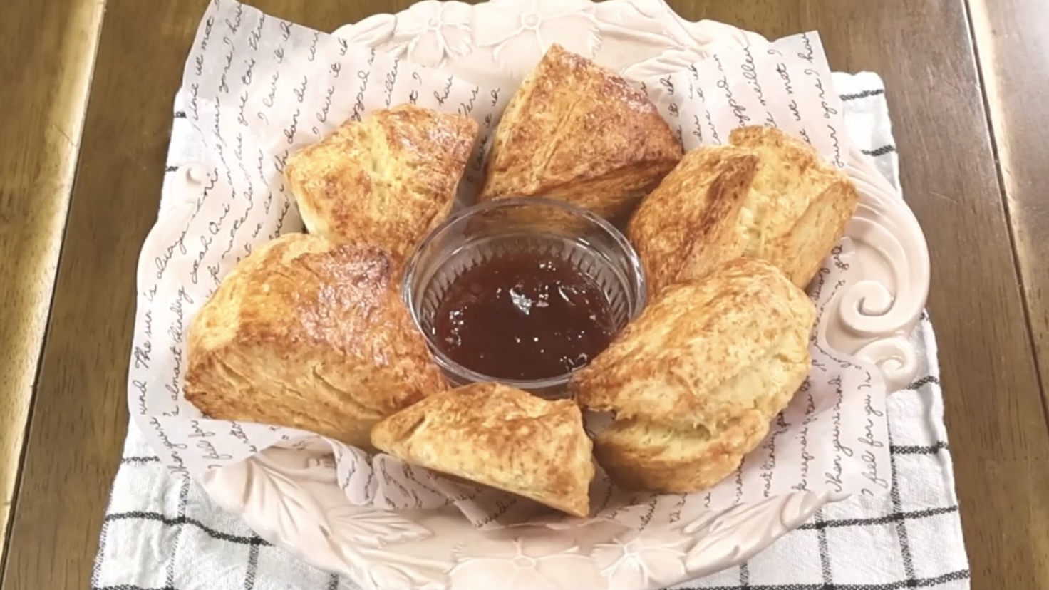예쁘게 스콘을 접시에 담아 주고록 해요. 가운데 딸기잼을 두고 찍어먹으면 정말 맛있어요.