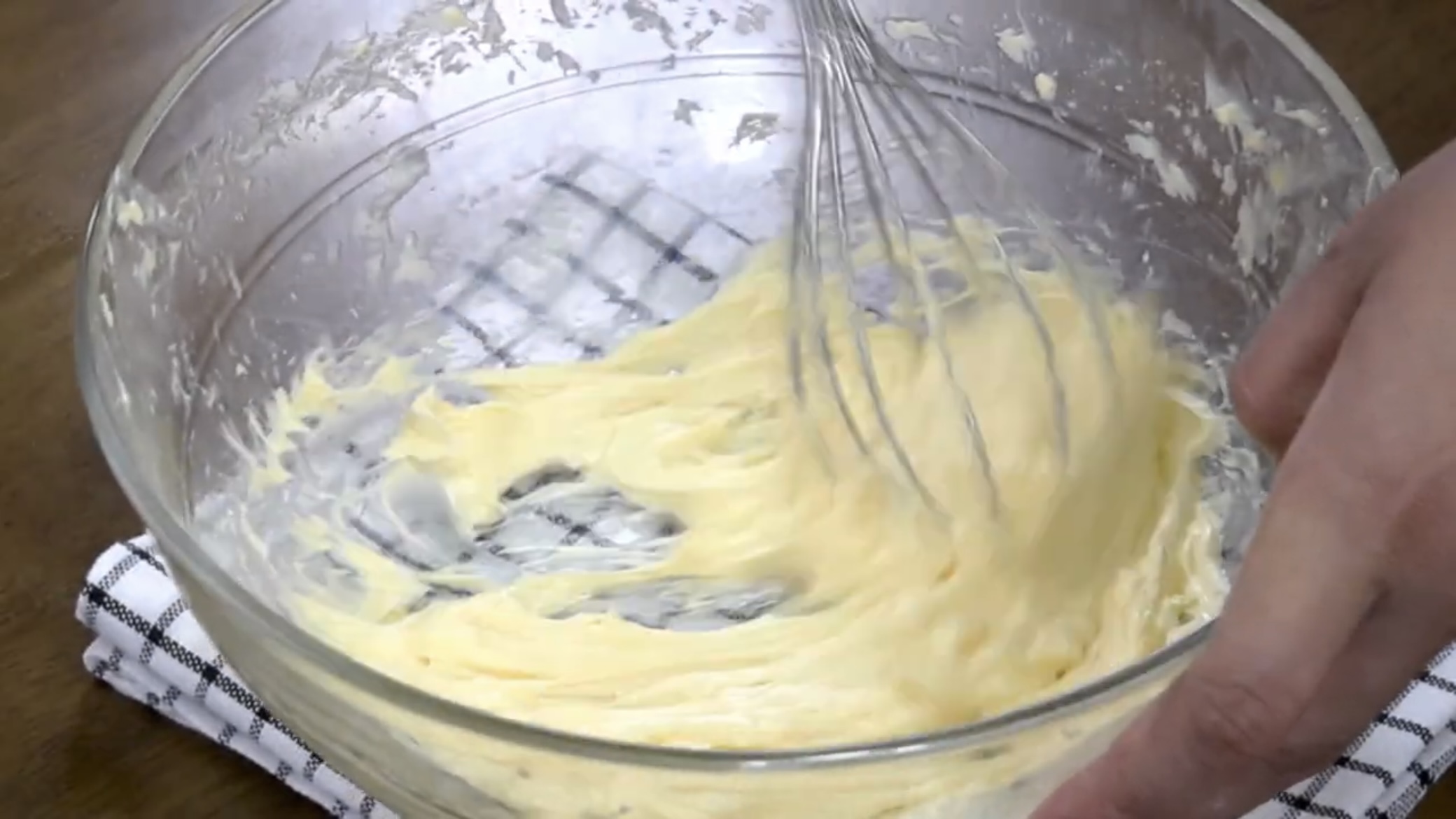 3. 계란을 넣고 휘핑기로 잘 섞어주세요!