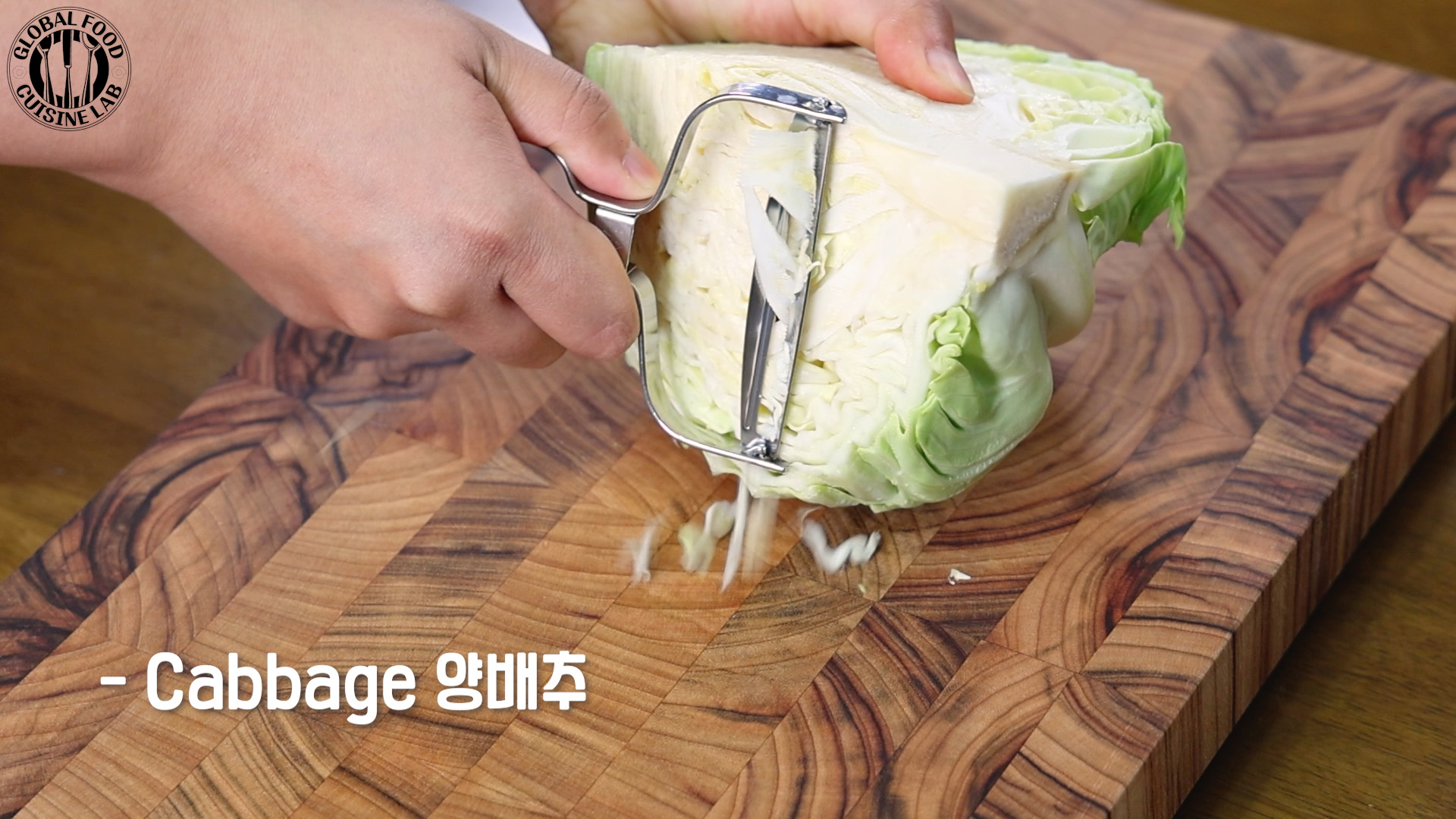 1. 양배추를 채칼을 이용해서 썰어주었어요.